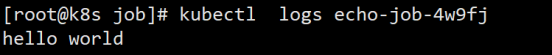 你还可以看到,Pod 被自动关联了一个名字,用的是 Job 的名字(echo-job)再加上一个随机字符串(4w9fj),这当然也是 Job 管理的功劳,免去了我们手工定义的麻烦,这样我们就可以使用命令 kubectl logs 来获取 Pod 的运行结果: