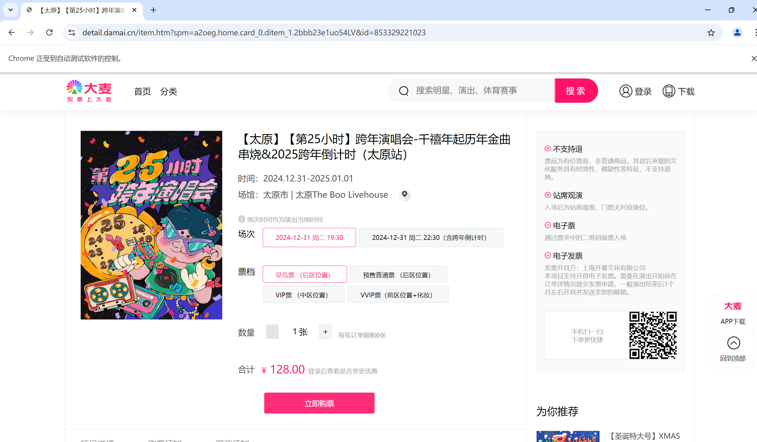 # 选择具体票型部分未写,该部分可自行添加,不添加的话,自行选择进入页面后大麦的默认选择。
