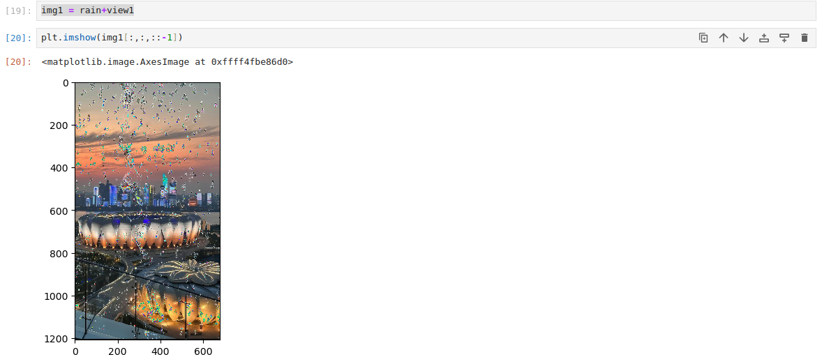 rain和view1都是NumPy数组,并且它们的形状(即尺寸和通道数)相同,那么这种加法运算会逐元素地将两个数组的对应元素相加。 - 例如,如果