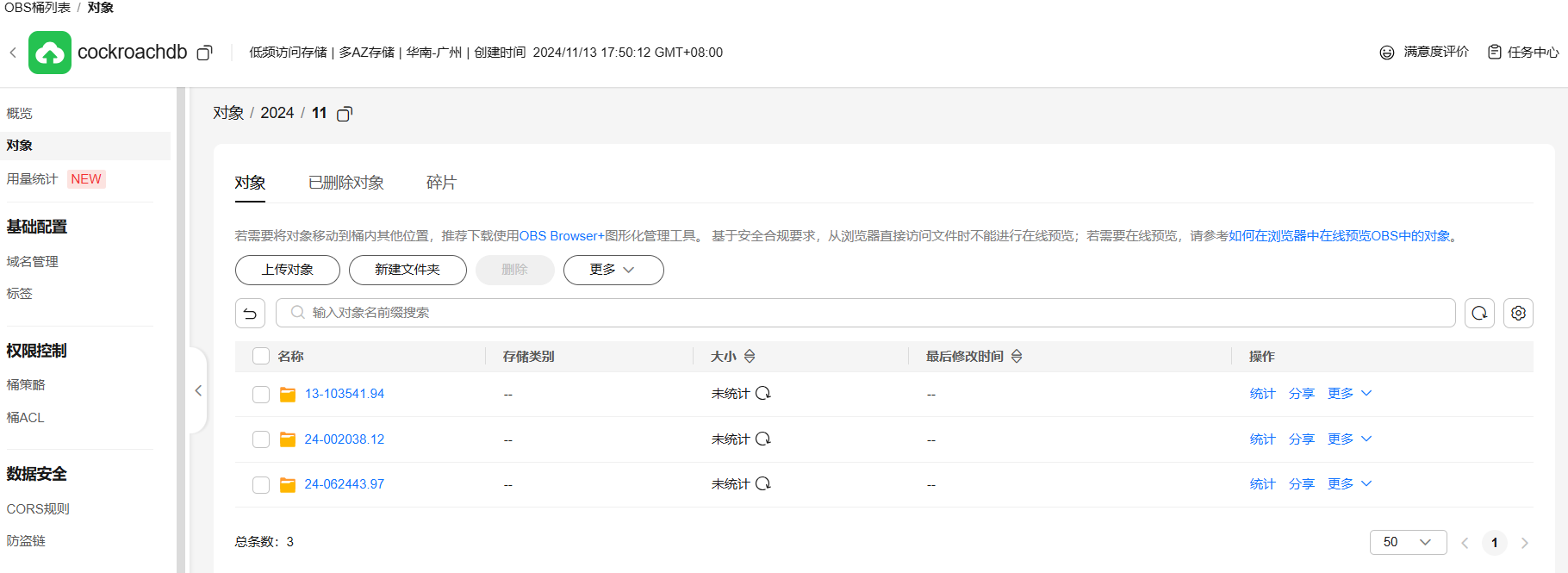 | 对象存储服务 OBS | 低频访问存储 | 多AZ存储 | 私有桶 |