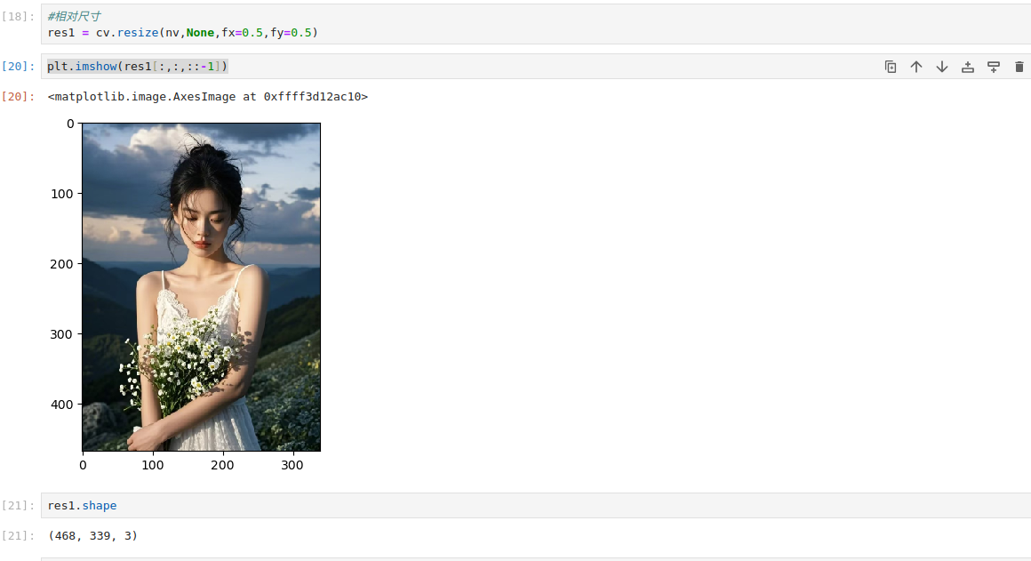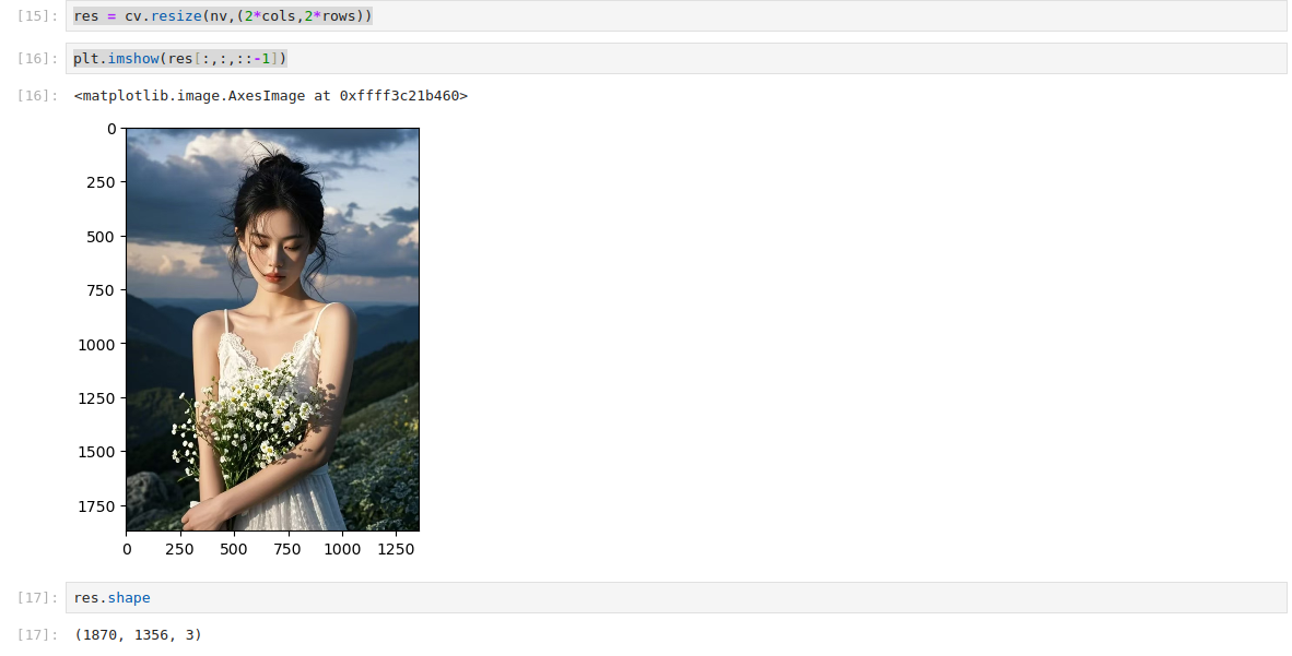 res = cv.resize(nv,(2*cols,2*rows)) #注意:在 OpenCV 中,图像通常以 NumPy 数组的形式存储,而 NumPy 数组的索引顺序是先列后行。括号里的参数必须先写宽度(列数),再写高度(行数)