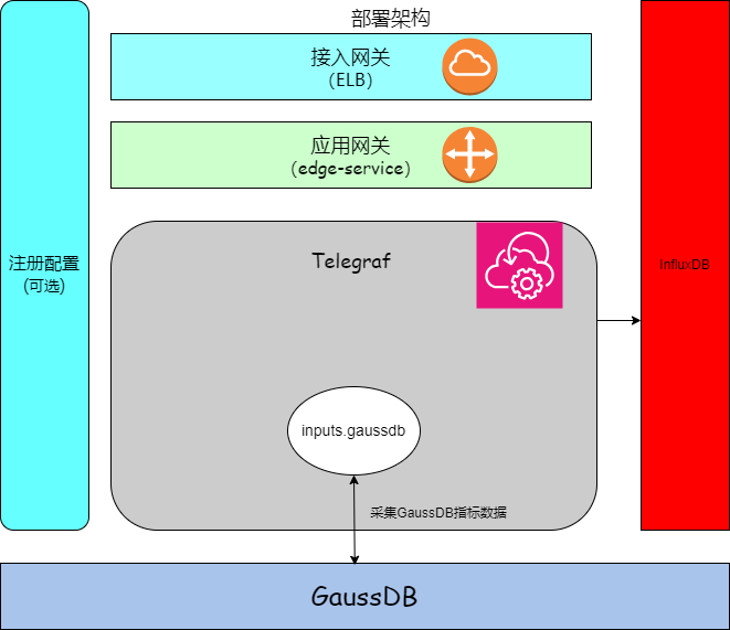 基于 inputs.postgresql 插件,开发提供从 GaussDB 中采集数据库性能指标的功能的 inputs.gaussdb 插件。inputs.gaussdb 插件将通过 SQL 查询从 GaussDB 中提取数据库性能指标并将其转化为时序数据存到InfluxDB中,以便进行存储和后续分析。