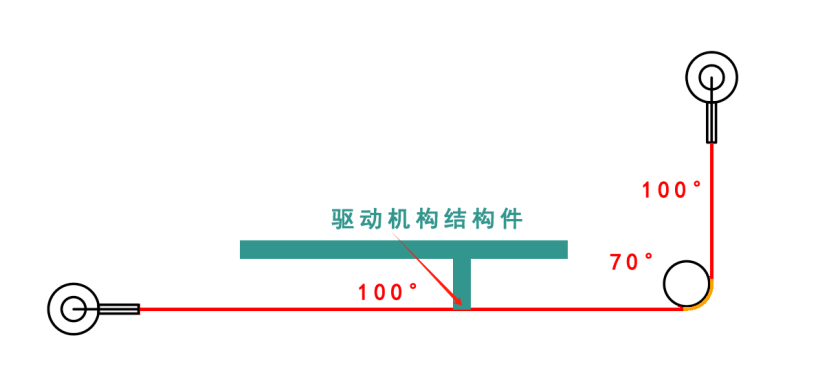 所以,驱动钛丝经过的转轴或支点结构时,需要考虑这个驱动位移量(以及力量)的损失,当采用金属转轴或支点时,还需要考虑温度损失。