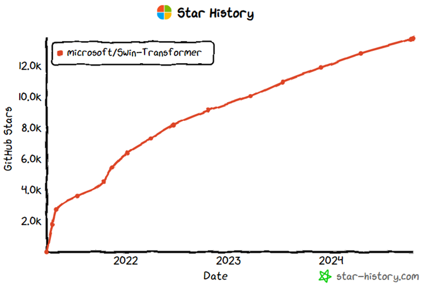 截至 2024 年 10 月 17 日,Swin-Transformer 项目的 GitHub 统计数据如下: