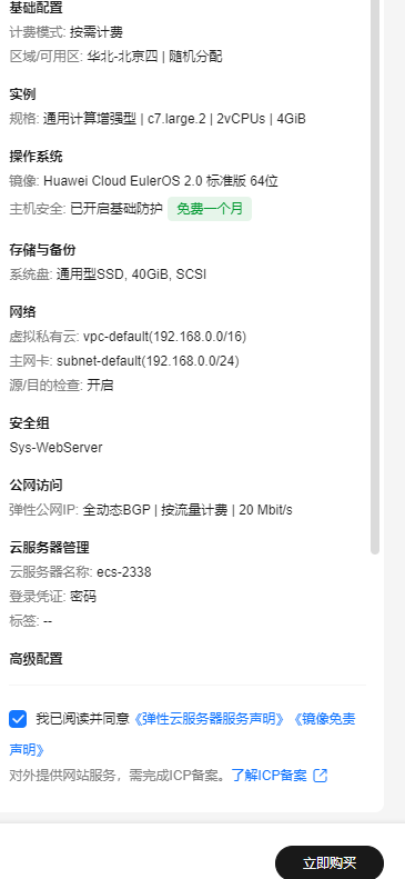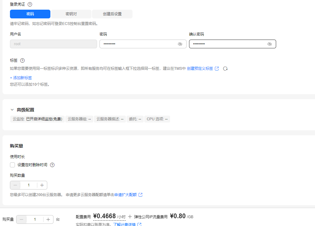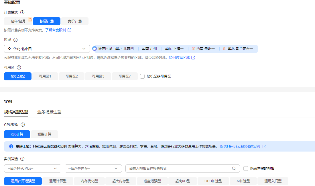 1、 在华为云首先选择“购买弹性云服务器”,选择“按需付费”,进到如下界面