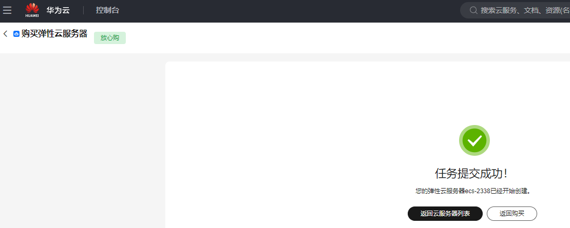5、 购买成功后,会显示任务成功信息,可以查看自己云服务器资料。