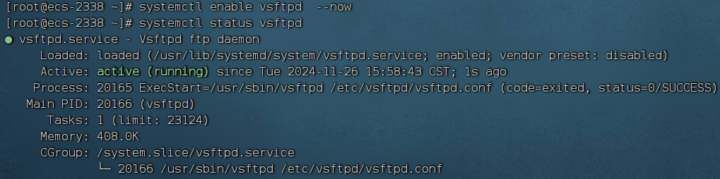 8、 查看vsftpd服务是否启动,并设置开机自启动