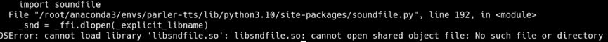 我在运行parler-tts时遇到一个大坑:运行完github给的安装库指令,运行代码时它会提示import soundfile失败,因为没找到libsndfile.os文件