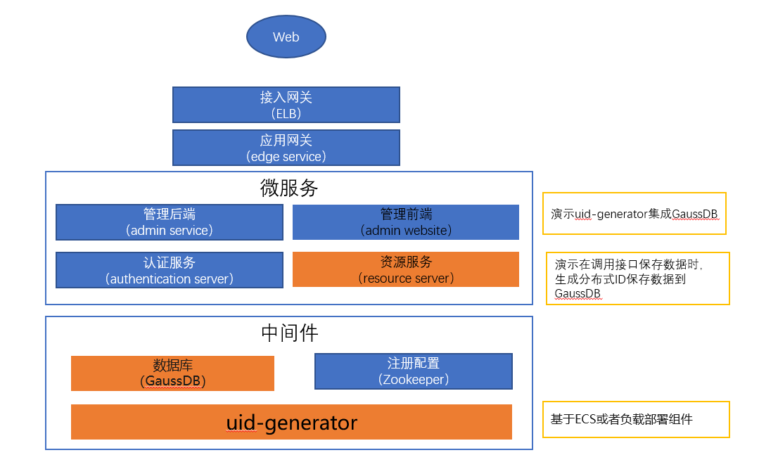 在互联网系统设计开发中,我们需要接口能够达到高性能,高并发和高可用要求,同时需要保证数据的唯一性,传统的数据库自增,uuid等方式无法满足要求,就需要一个性能好,可靠的分布式id组件来解决这个痛点。百度uid-generator采用雪花算法方案来设计分布式ID。 目前uid-generator示例中只写了支持mysql,其它数据库未得到验证,本次任务希望从架构角度出发,修改代码架构,让uid-generator能够支持多种数据库,例如GaussDB、openGauss、达梦、人大金仓、南大通用、神舟通用、PostgreSql、MariaDB、SqlServer、oracle等。并以GaussDB作为目标数据库进行验证。验证通过之后以华为开源示例项目servicecomb-fence为演示环境演示,制作镜像上架云商店,方便华为云CCE用户快速集成使用uid-generator,以此来扩展华为云生态影响力。