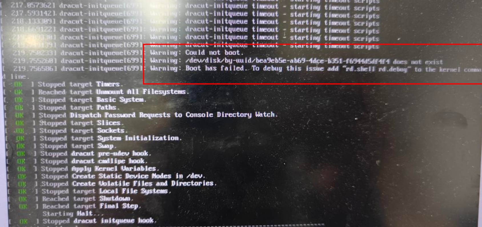4、登录实例节点,发现无法登录,联系OS人员登录BMC查看日志,发现raid卡驱动有问题