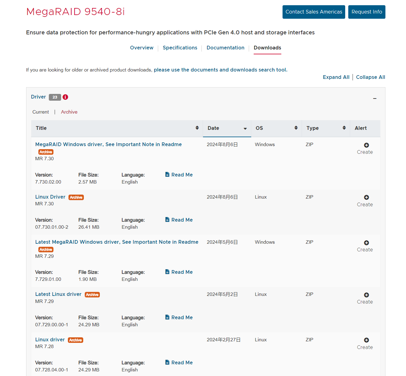 5、去官网查看raid卡驱动版本 https://www.broadcom.cn/products/storage/raid-controllers/megaraid-9540-8i