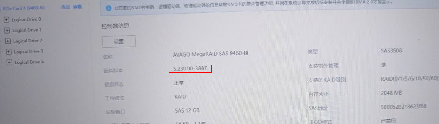 发现该raid卡raid卡 9460-8i已经下线,找了接近的驱动版本显示支持(虽然当前版本显示支持该型号)