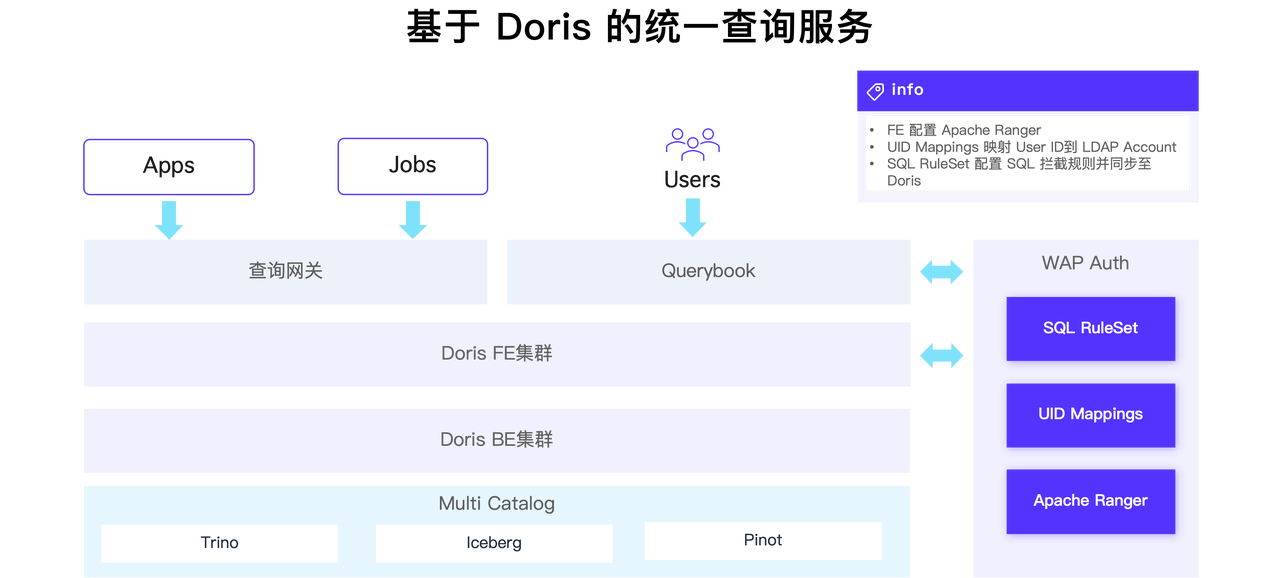 为了解决这些问题,结合 Doris 实现了统一查询服务,整体框架下图所示: