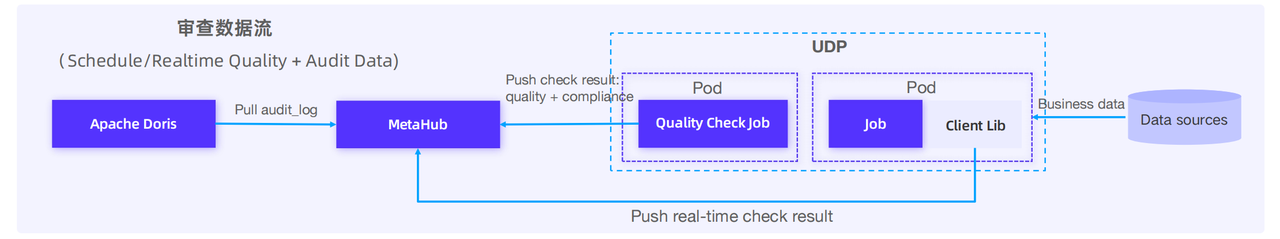 数据流审查主要集中在数据审计、合规性检查和质量监控三个方面。在数据审计方面,直接从 Doris 系统中提取 Audit_log 数据,实现高效审计。在合规性和质量监控上,采用定时任务主动扫描并验证 Doris 中的数据,以确保其合规性和质量达标。