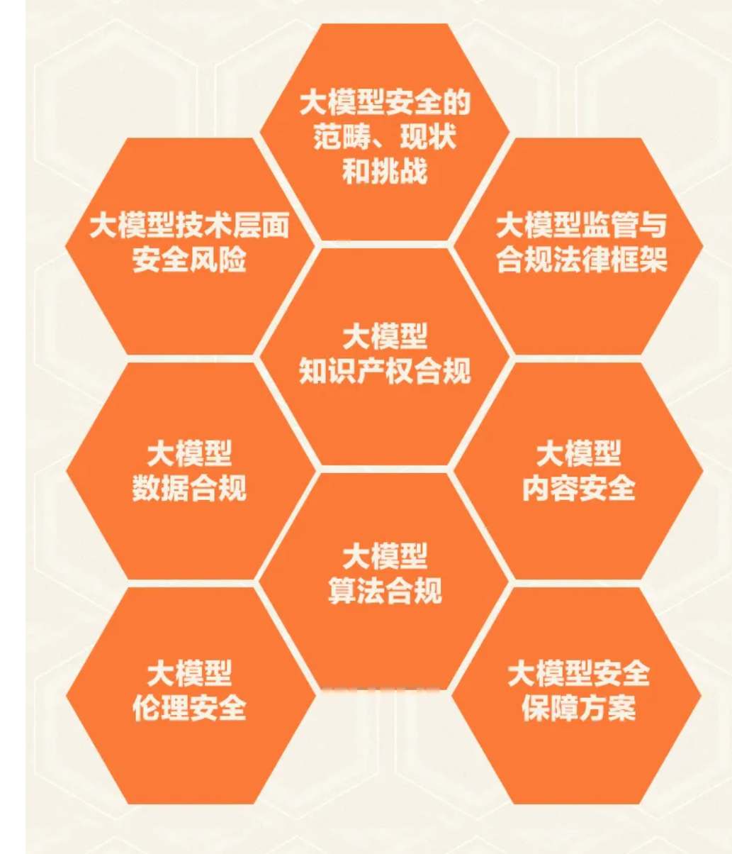 (1)大模型安全的范畴、现状和挑战:包括安全、监管与合规的关键问题,以及国家安全和社会治理角度安全隐患和风险点;