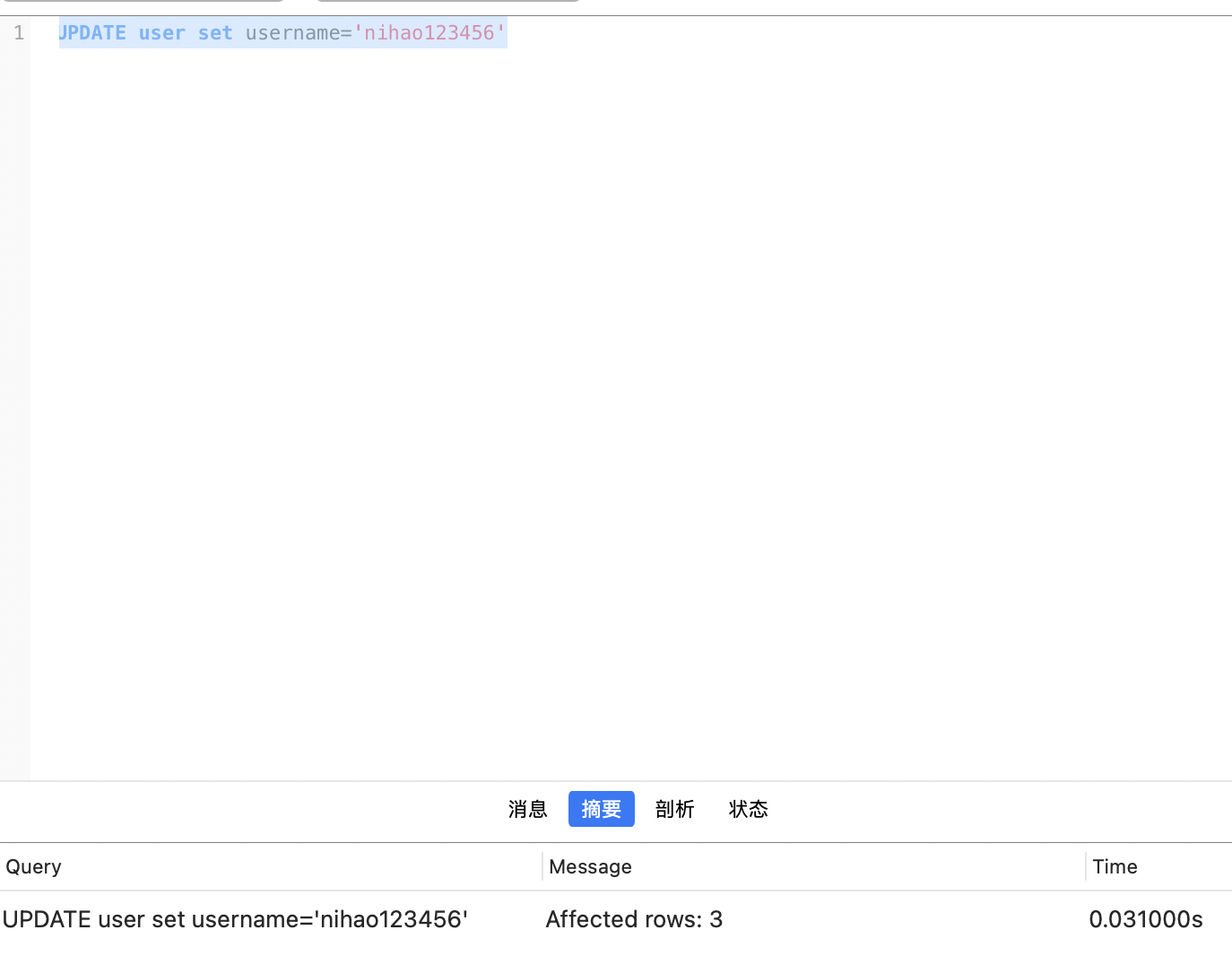 将所有数据复制为insert语句,以及update语句(双重保险),然后你可以刷新看一下,发现数据就变为你误操作的数据了,此时你将复制好的insert以及update,执行一下(如果你执行的是delete,就用insert,如果是update就用update)