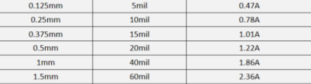 这类电流和线宽的关系表非常的常见,大家可以根据钛丝的最大驱动电流来对照设计。