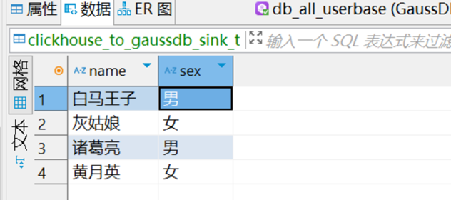 观察GaussDB目标表clickhouse_to_gaussdb_sink_t,结果也已经成功写入: