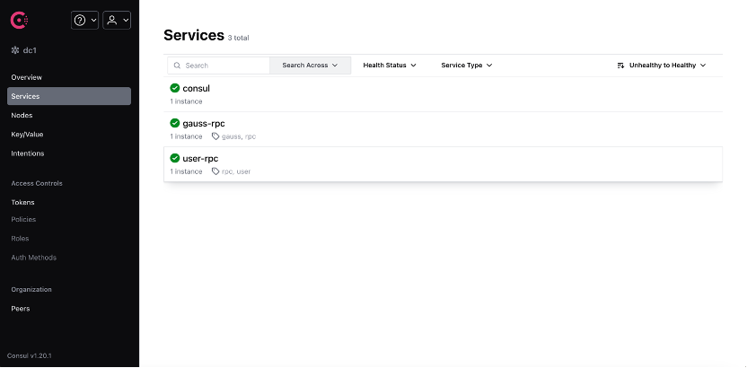 这里可以看到我们启动的两个 rpc 服务已经注册到了Consul中。