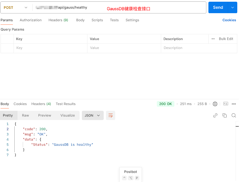在 gauss 服务中,提供了一个用于 GaussDB 健康检查的接口,在 user 服务中提供了CURD接口给外部调用。