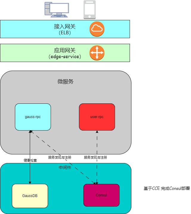 2. 创建一个用于检测GaussDB健康检查的服务,和一个用户的服务,其中用户服务需要支持GaussDB作为后端存储实现用户服务的CURD。