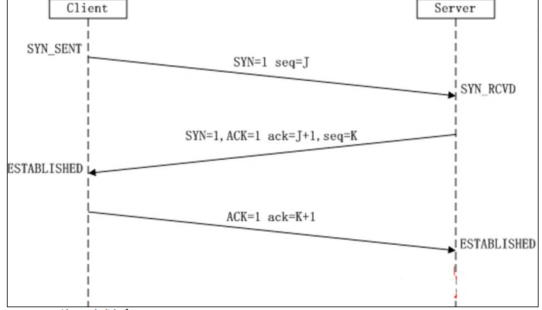 序号=K+1,ACK是否为1,如果正确则连接建立成功,Client和Server进入ESTABLISHED状