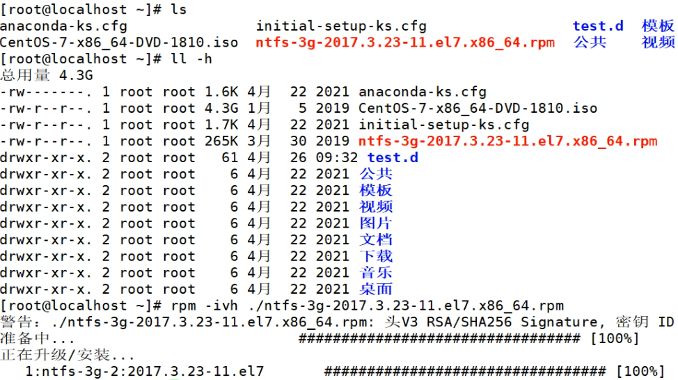 命令颜色:黑色表示普通文件,蓝色表示目录。命令行搜出来的目录以“ . ”开头就是隐藏文件。