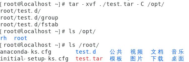 [root@localhost ~]# tar -xvf ./grub.tar -c /opt/ 意思是将grub解压到opt