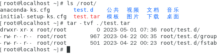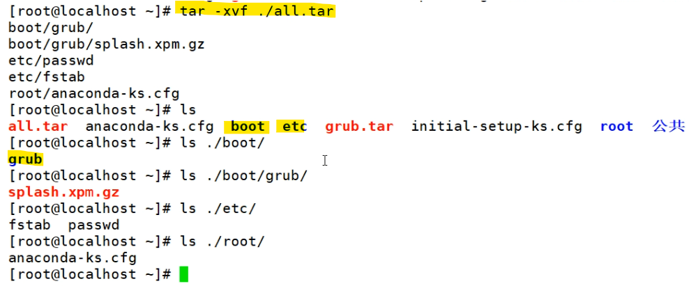 [root@localhost ~]# tar -xvf ./grub.tar #解压缩得到的是解压到当前