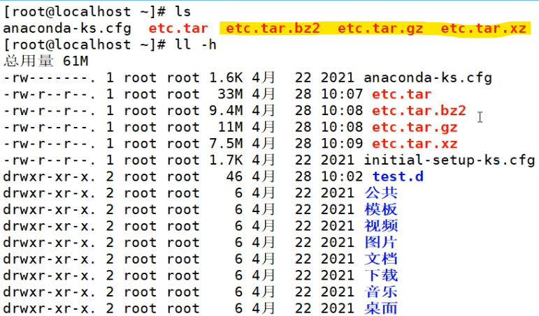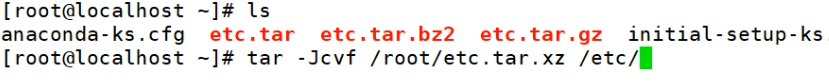 [root@localhost ~]# tar -Jcvf ./etc.tar.xz /etc