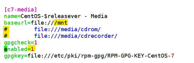 设置本地yumy源被启用vim /etc/yum.repos.d/CentOS-Media.repo