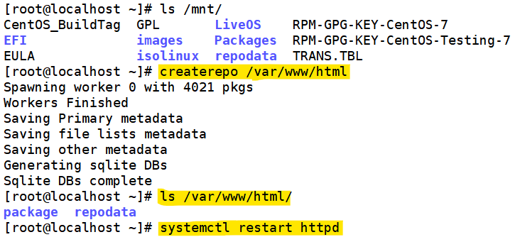 8、 将光盘中Packages的所有内容cp -a到/var/www/html/package下