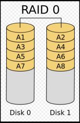 RAID 0 : 无奇偶校验与冗余的条带存储 ( 条带卷) :