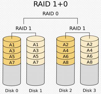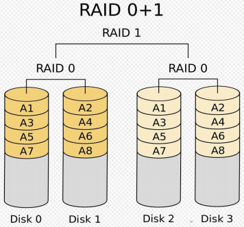 RAID 01: 条带与镜像存储: 是radi0与raid1的组合体。