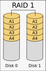 多块磁盘组成RAID 1以后,数据将被同时复制到每块硬盘中去。制作这种磁盘阵列至少 需要两块磁盘,且两块磁盘的空间要求大小相同。如果两块不同大小的硬盘组成raid 1 那 么最终的容量以最小的那块磁盘为准。raid1安全性是最高的,但同时磁盘利用率最低。