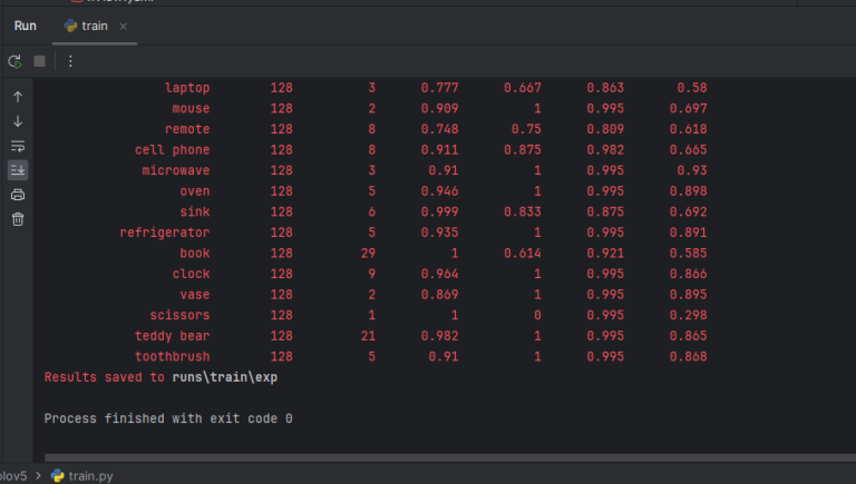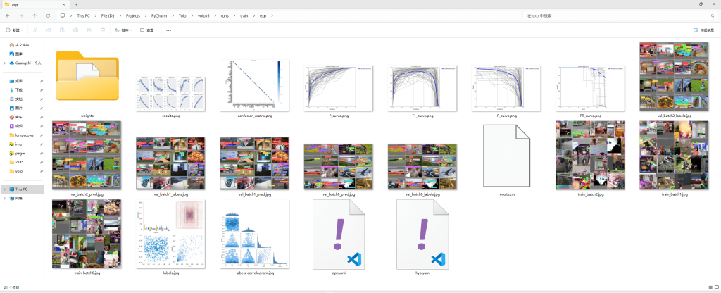 运行成功后如图,训练结果保存在runs\train\exp文件夹里。