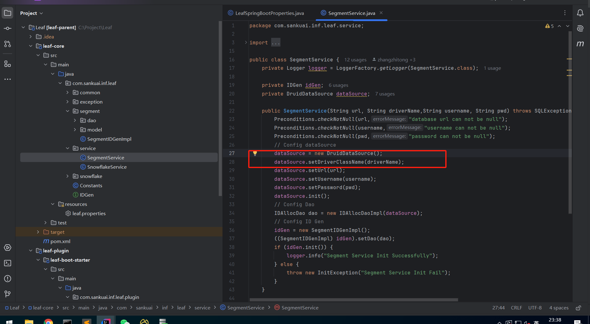 --leaf.segment.url=jdbc:sqlserver://xxxxx:1433;databaseName=leaf;encrypt=false;trustServerCertificate=true;