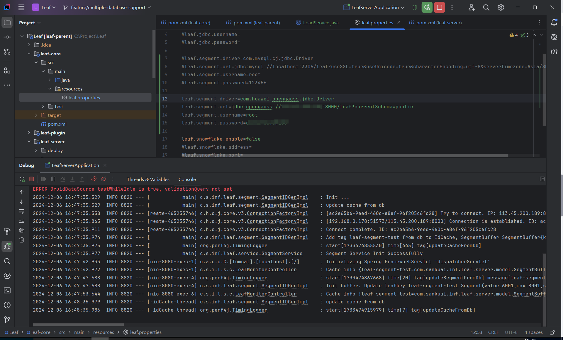 目前Leaf示例中只写了支持mysql,其它数据库未得到验证,本次任务希望从架构角度出发,修改代码架构,让Leaf能够支持多种数据库,例如GaussDB、openGauss、达梦、人大金仓、南大通用、神舟通用、PostgreSql、MariaDB、SqlServer、oracle等。并以GaussDB作为目标数据库进行验证。