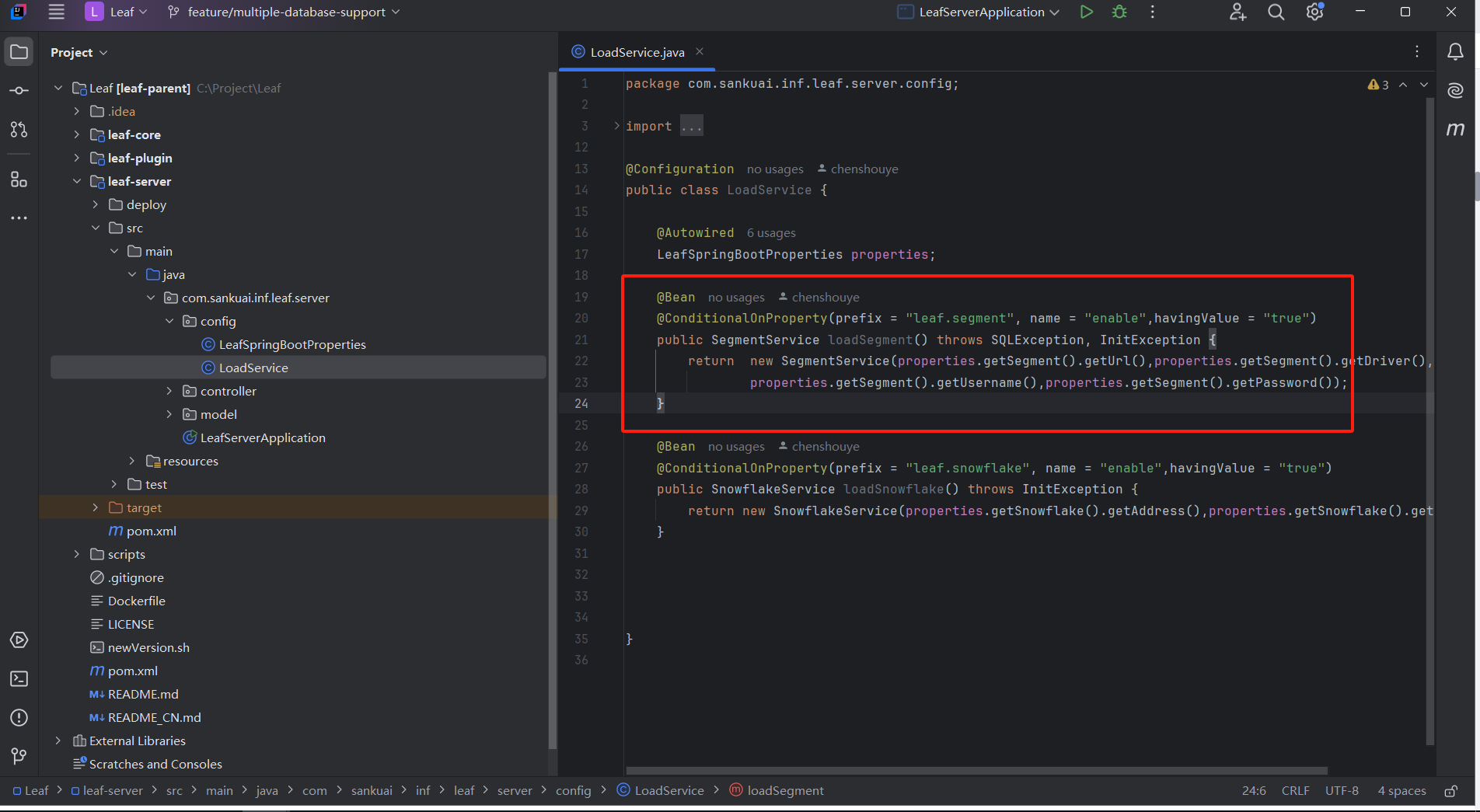 5.leaf-server中SegmentService和SnowFlakeService修改为Bean初始化,加了条件判断