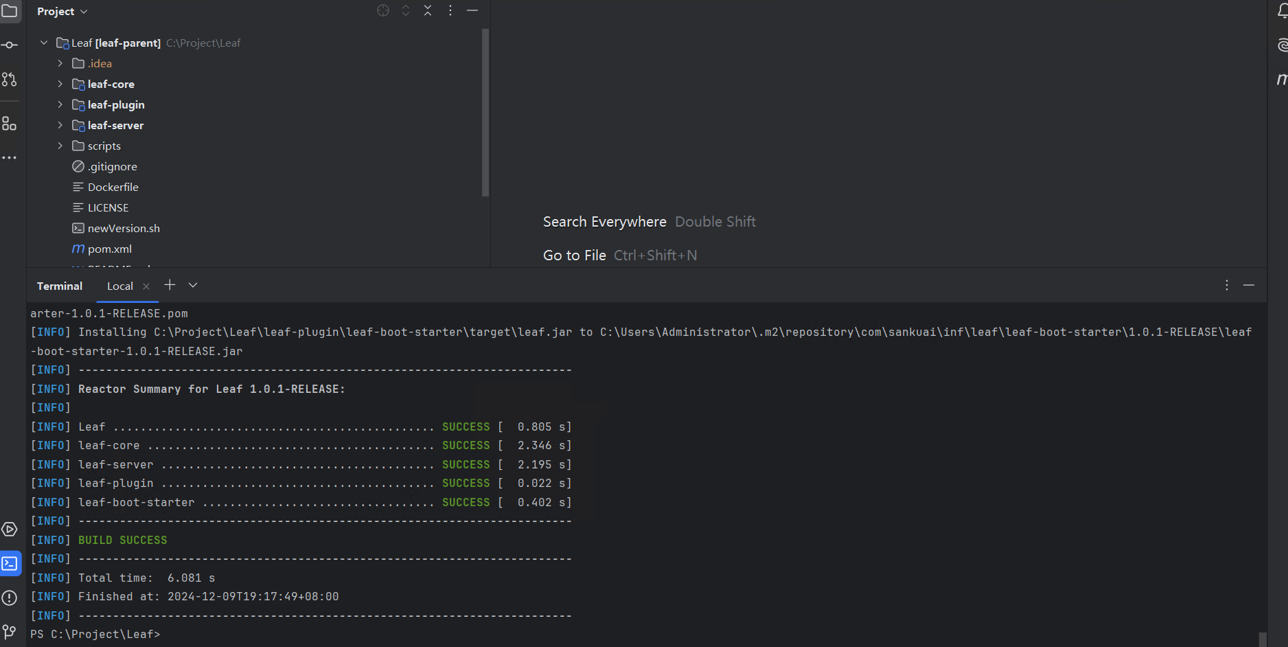 这一部分我直接在本地跑代码进行验证。首先先把项目打包安装到本地仓库。
