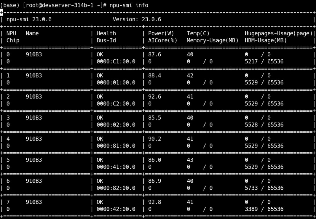 如果 Health 状态为 OK,说明 NPU 和 CANN 正常运行。