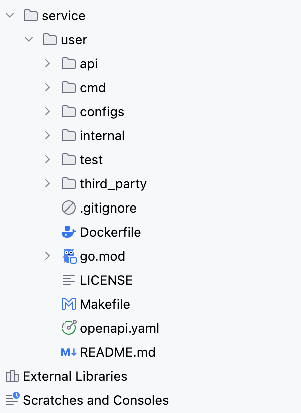 1.使用go kratos创建一个user用户服务项目结构目录如下: