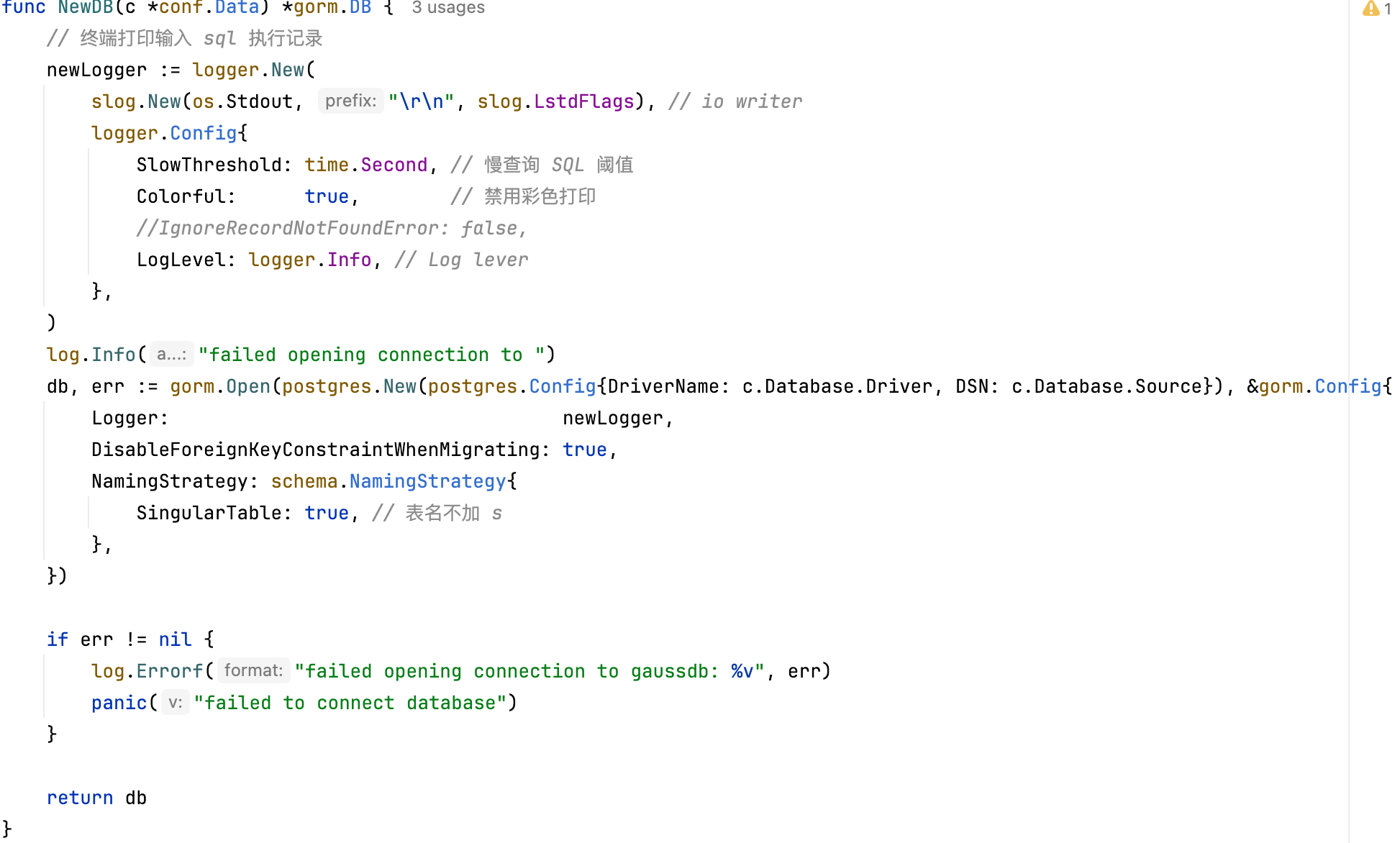 1. 禁用表名复数化 SingularTable: true