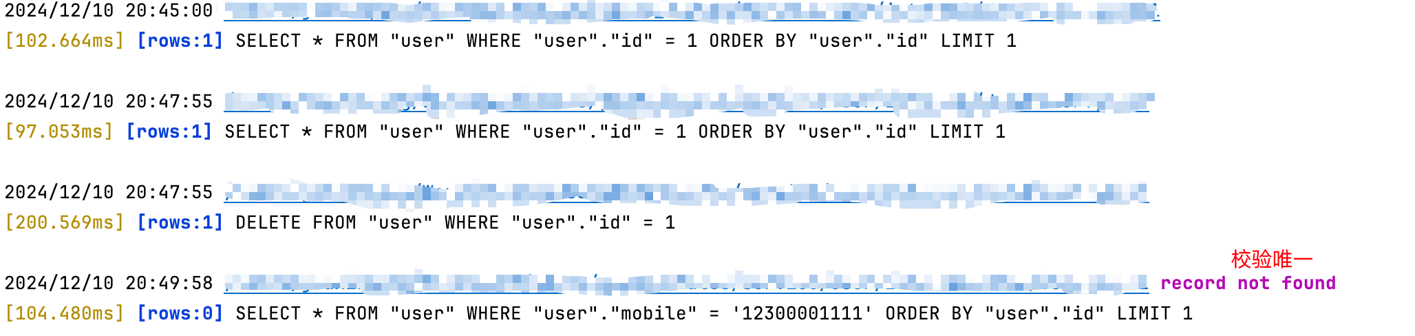 这里需要注意在 GORM 中,默认情况下,表名是根据模型的名称通过复数化规则生成的。例如,模型 user 的表名会被默认设为 users
