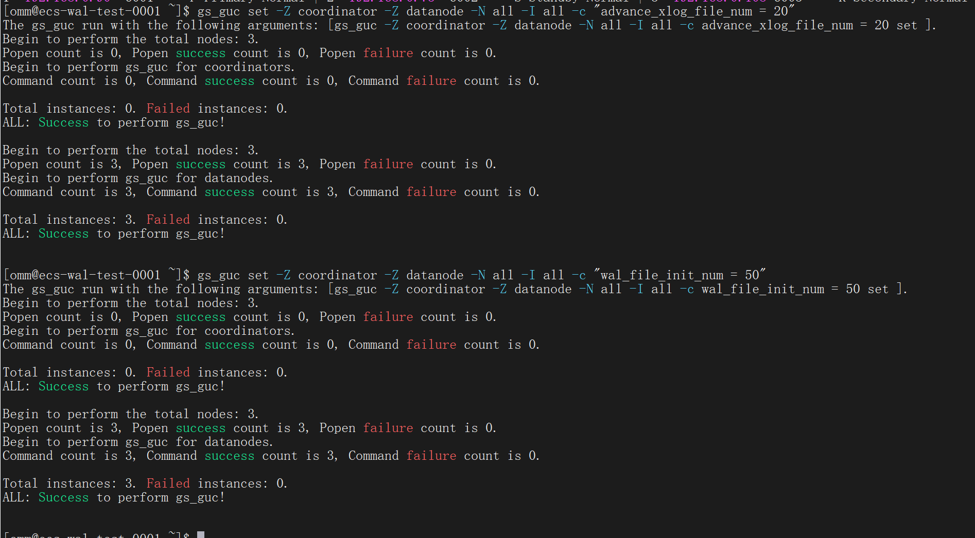 gs_guc set -Z coordinator -Z datanode -N all -I all -c "wal_file_init_num = 50"