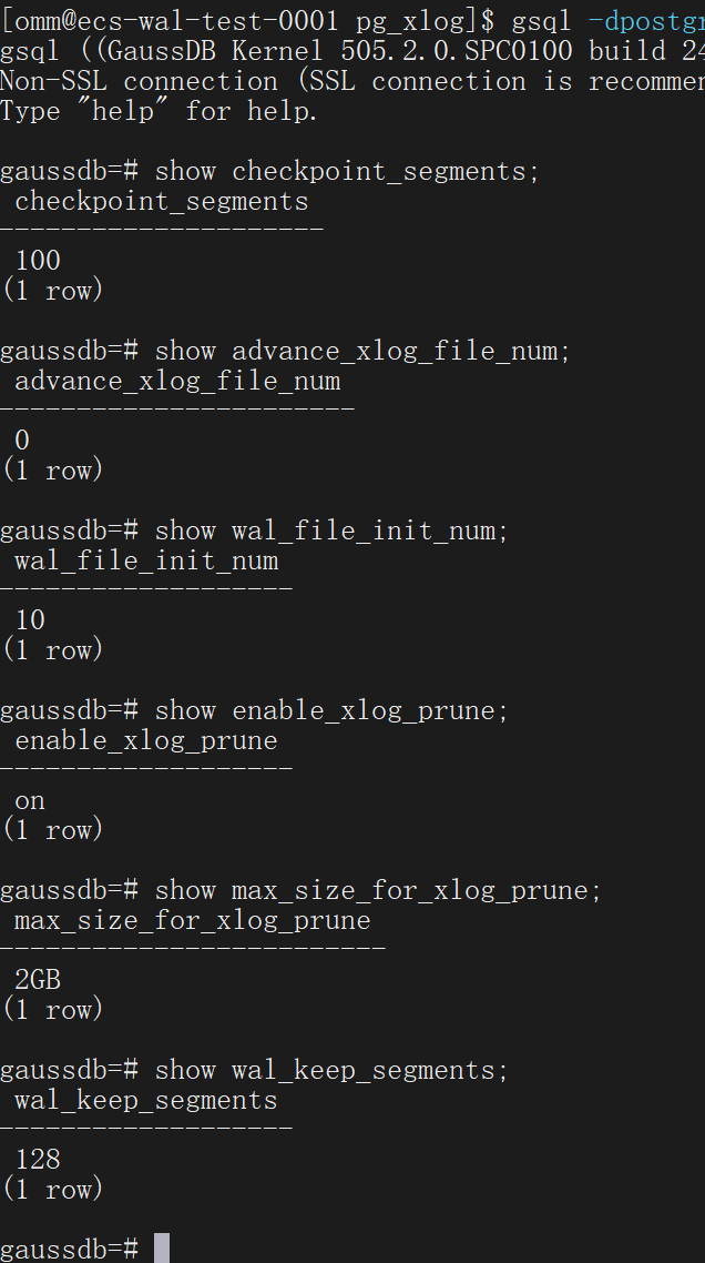 [omm@ecs-wal-test-0001 ~]$ gsql -dpostgres -p30100 –ar