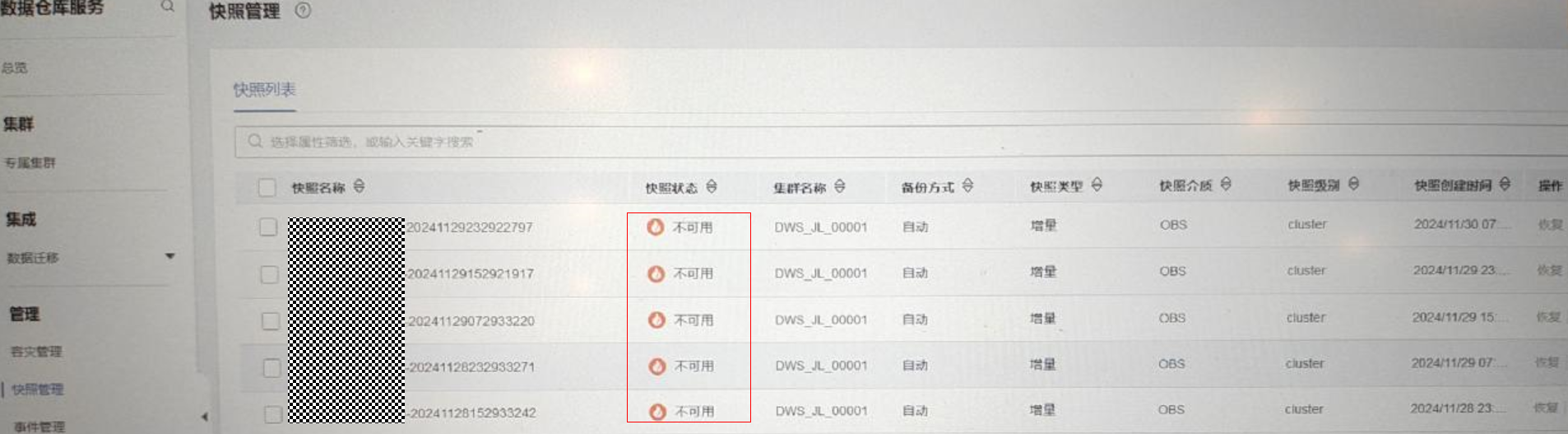 [HCS]DWS快照管理:自动增量备份任务一直失败