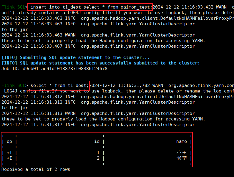 3)、启动sql-client.sh -s yarn-session ,进入命令行交互界面