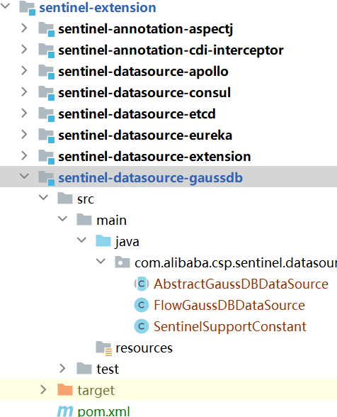 - 在sentinel-extension目录下新建sentinel-datasource-gaussdb模块,如下图所示