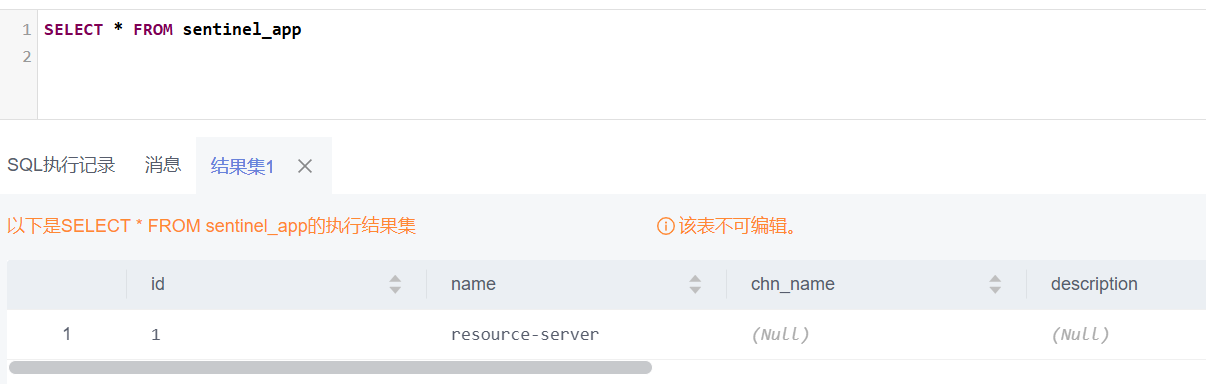 - 在CCE中部署resource-server工作负载,部署完成后,在GaussDB中查询sentinel-app表,
